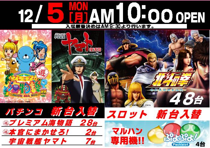 本日パチスロ「ぷよぷよ!」が導入されるマルハン大山店さんのP-Worldのページはこちら