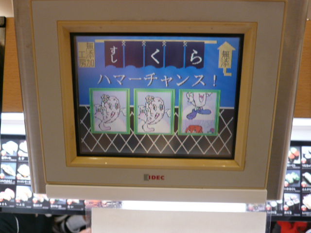 で、10皿位回したら液晶pushボタン(おあいそ)→カズヤステージ