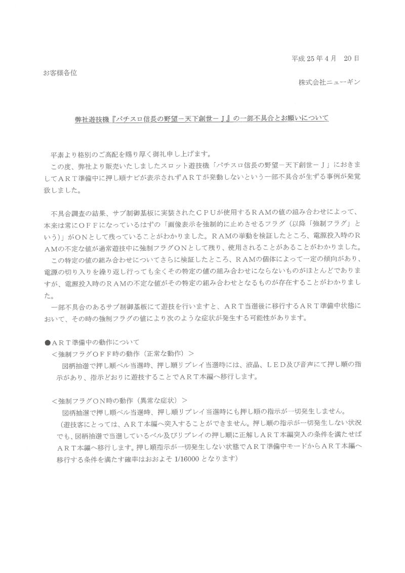 ニューギンは正常だから(致命的な)バグが起きませんじゃなくて