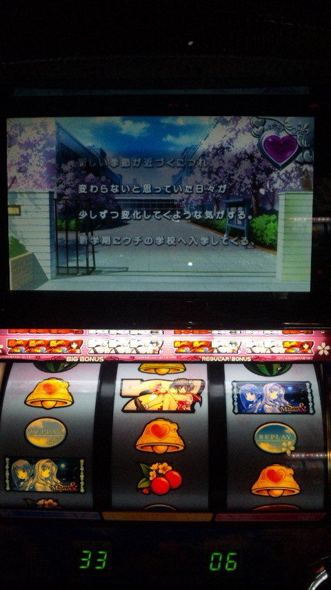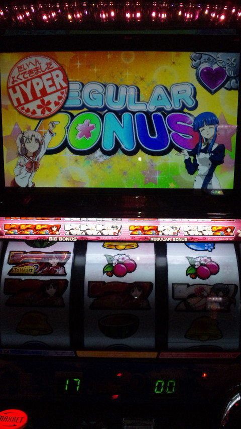 結局1700G、ボナ合算1/180、ベル1/6.28、チェリー1/113、スイカ1/170、-30kでヘタレ辞め。