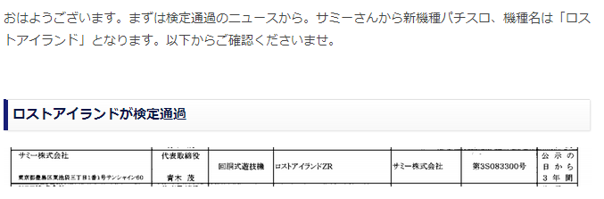 サミーの新機種パチスロが検定通過「ロストアイランドZR」