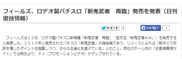 フィールズ、ロデオ製パチスロ「新鬼武者 再臨」発売を発表