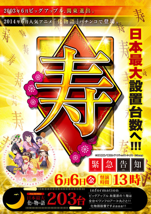 ビッグアップル秋葉原店がパチンコ「CR化物語」を日本最大規模の86台導入するらしい!特設ページも開設して気合い入りまくり!