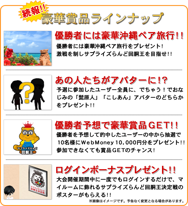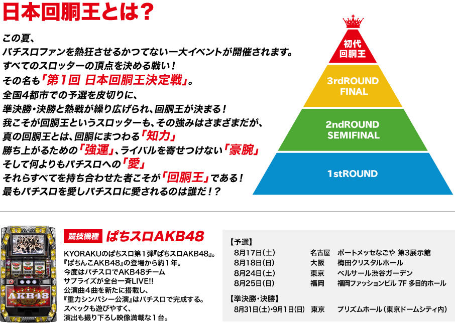 京楽のグループ会社であるクロスゲートが運営するオンラインホールのPC版「KYORAKUサプライズらんど」において23日より「回胴王決定戦」を開催する。前回の第1回大会は全国4都市で会場を設けての開催であったがヴァーチャルな大会へと変更された。エントリーの受付を14日より開始する。