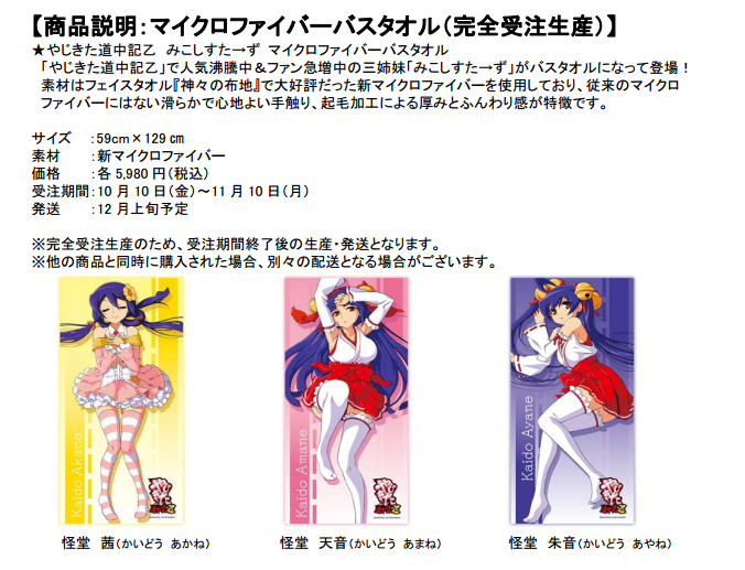 怪堂三姉妹の マイクロファイバーバスタオル発売!