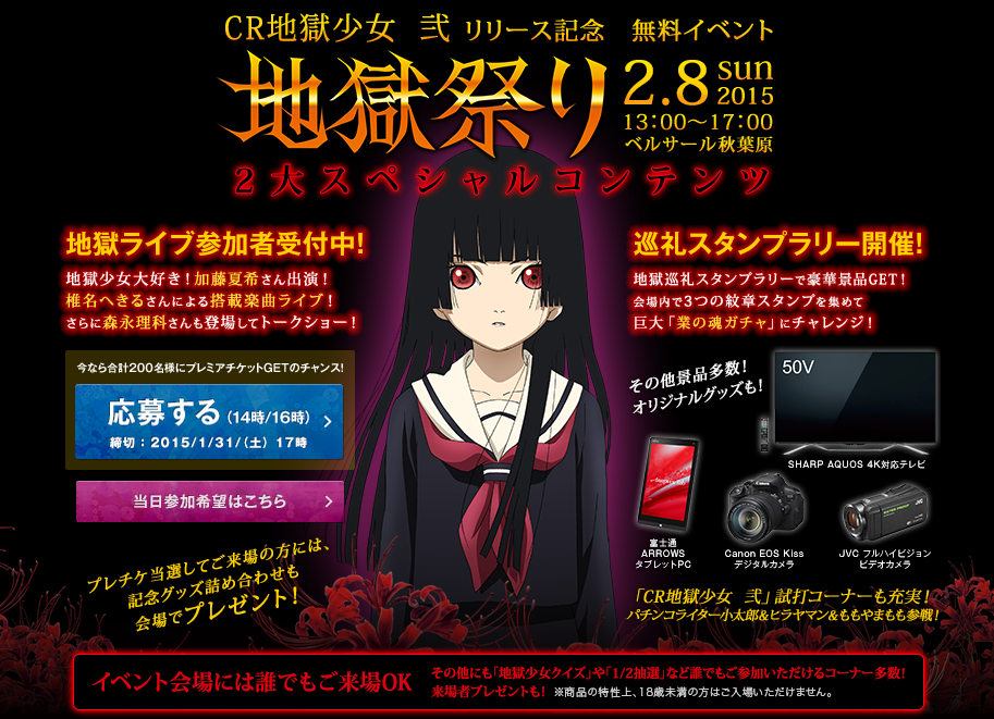 「CR地獄少女 弐、リリース記念無料イベント 地獄祭り」開催決定!