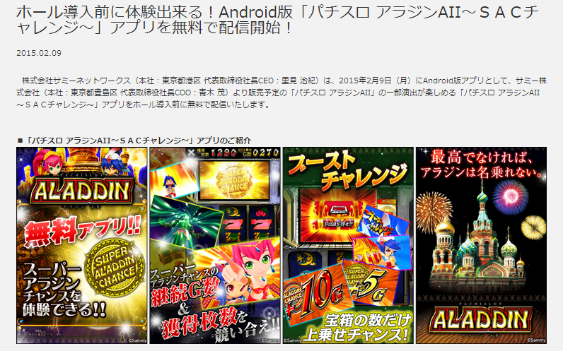 「パチスロ アラジンAII~SACチャレンジ~」アプリを無料で配信開始!