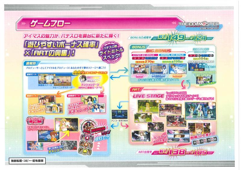 【噂】パチスロ「アイドルマスター ライブインスロット」は純増0.8枚のRT機で6月末に発売か?