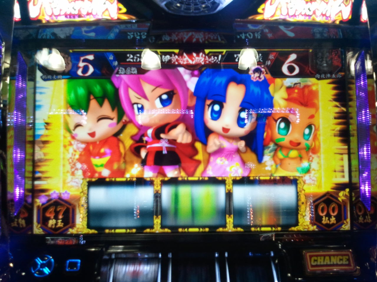 案の定3対3の対決で背景は青で負けましたが引き戻しして、そこから閉店まで50分間で2100枚